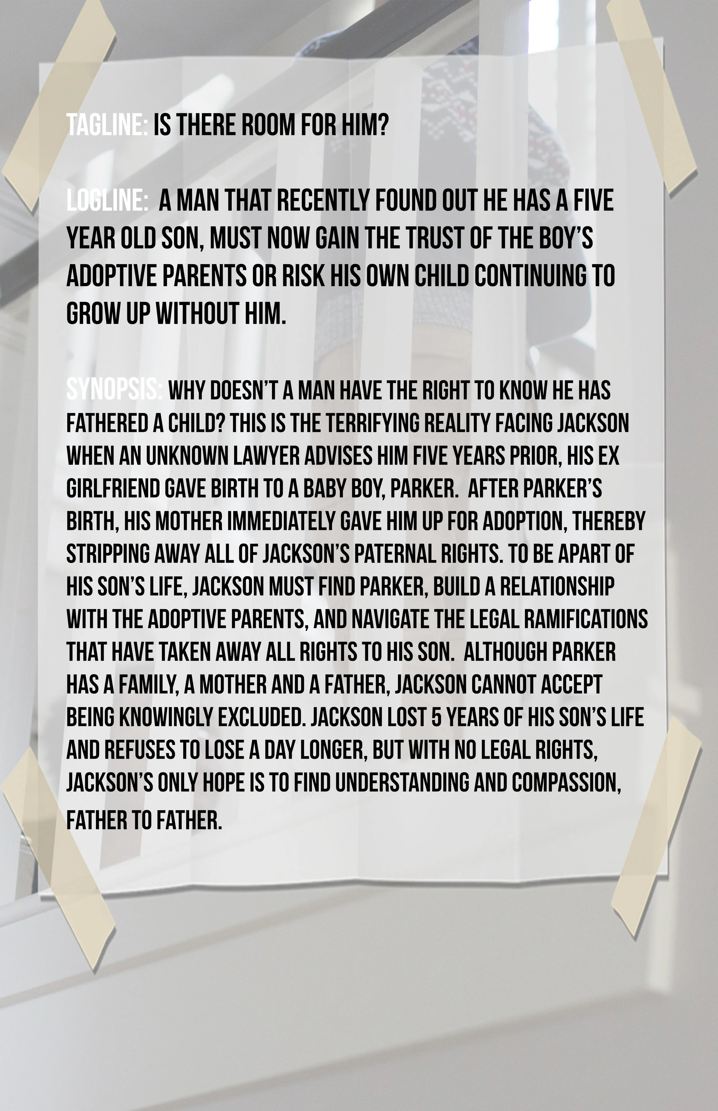 LOGLINE:A man that recently found out that he has a five year old son, must now gain the trust of the boy's adoptive parents or risk his own child continuing to grow up without him.
